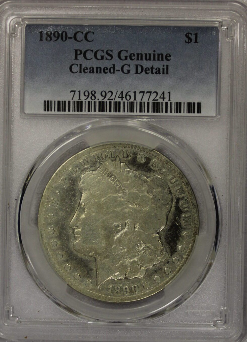 AUCTION- 1890-CC Morgan Silver Dollar PCGS Genuine Cleaned Good Details