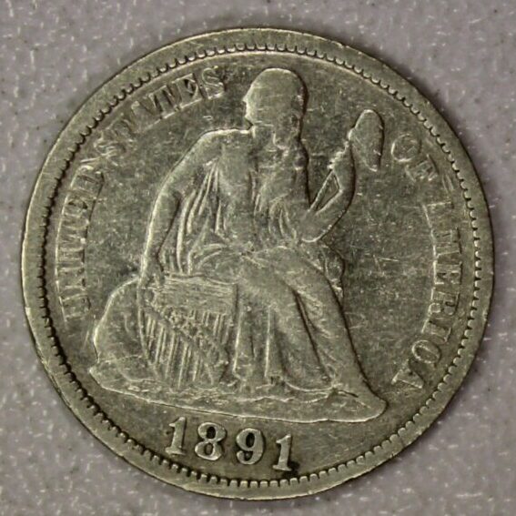 AUCTION- 1891 Seated Liberty Dime Cleaned