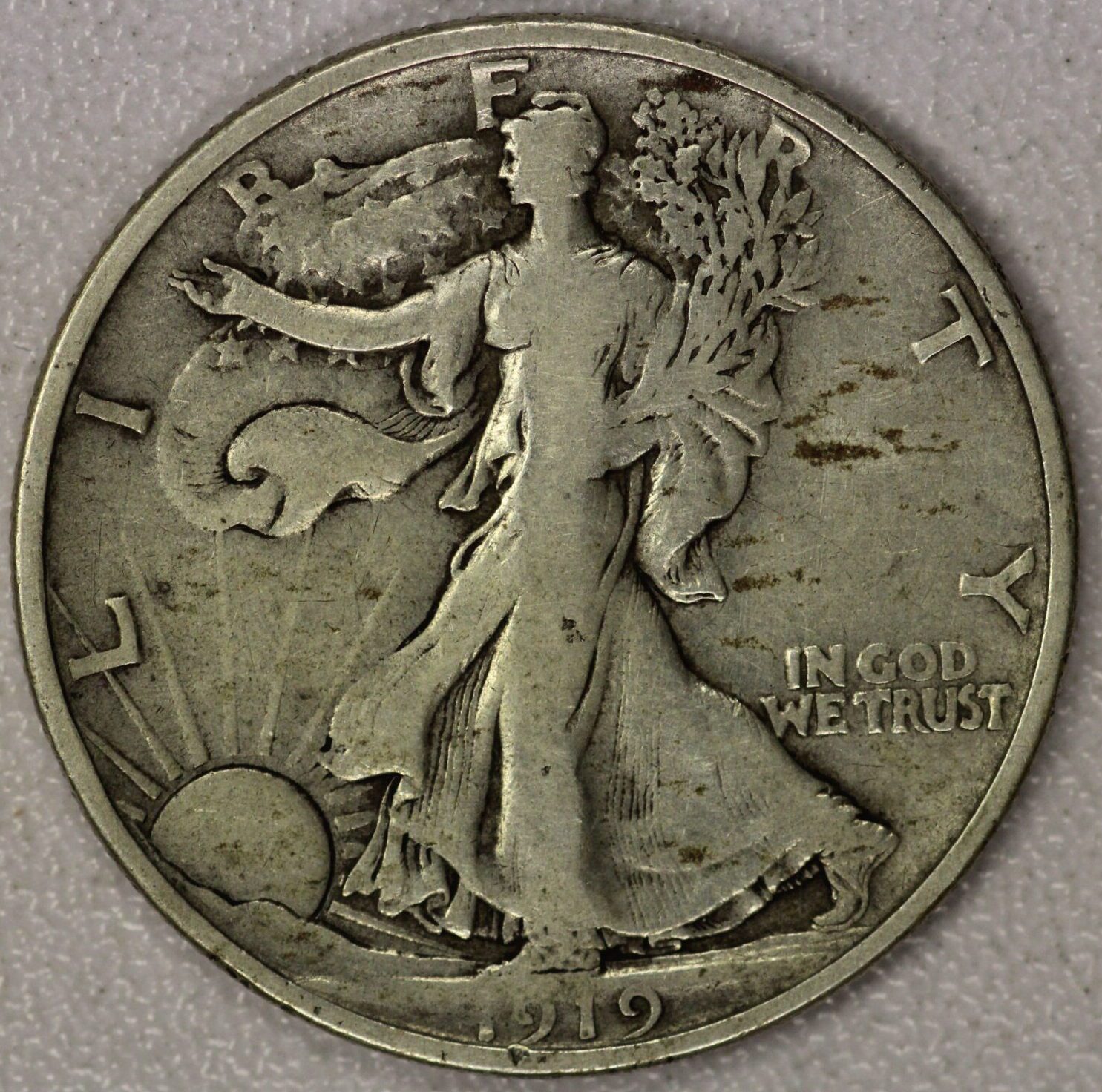AUCTION-Â Â 1919-D Walking liberty Half Dollar Circulalated