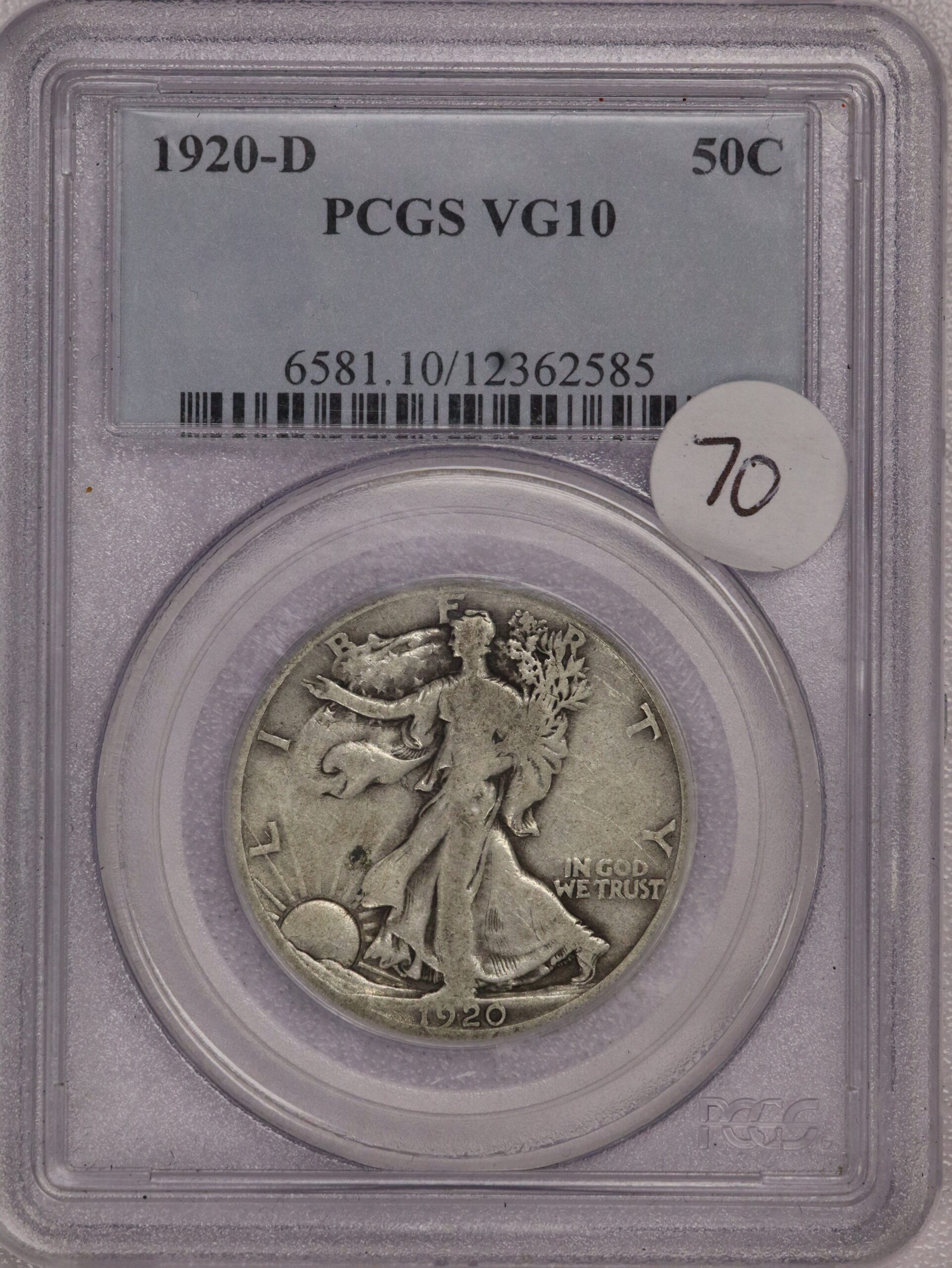 Auction – 1920 D Walking Half Dollar VG10 PCGS