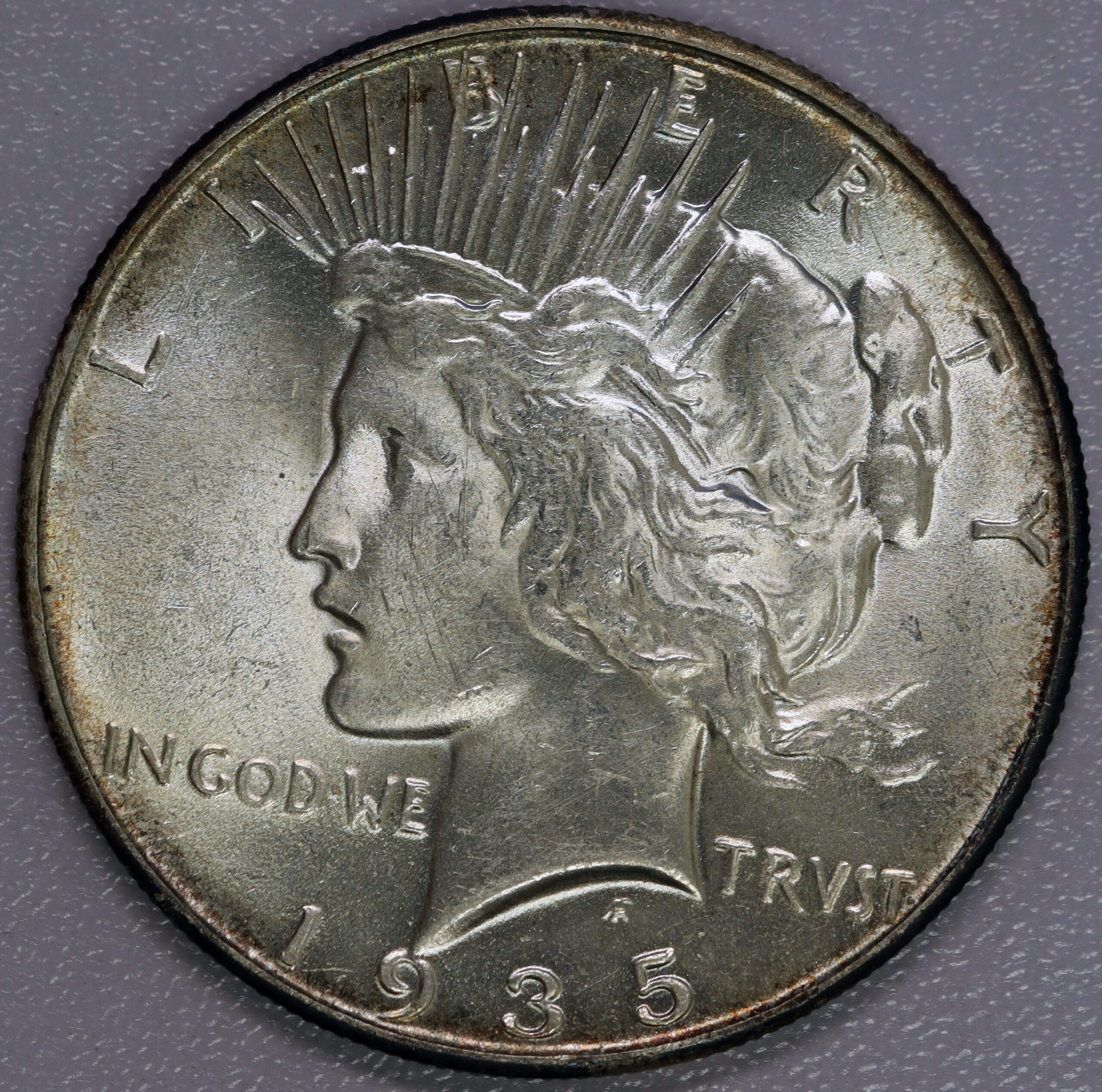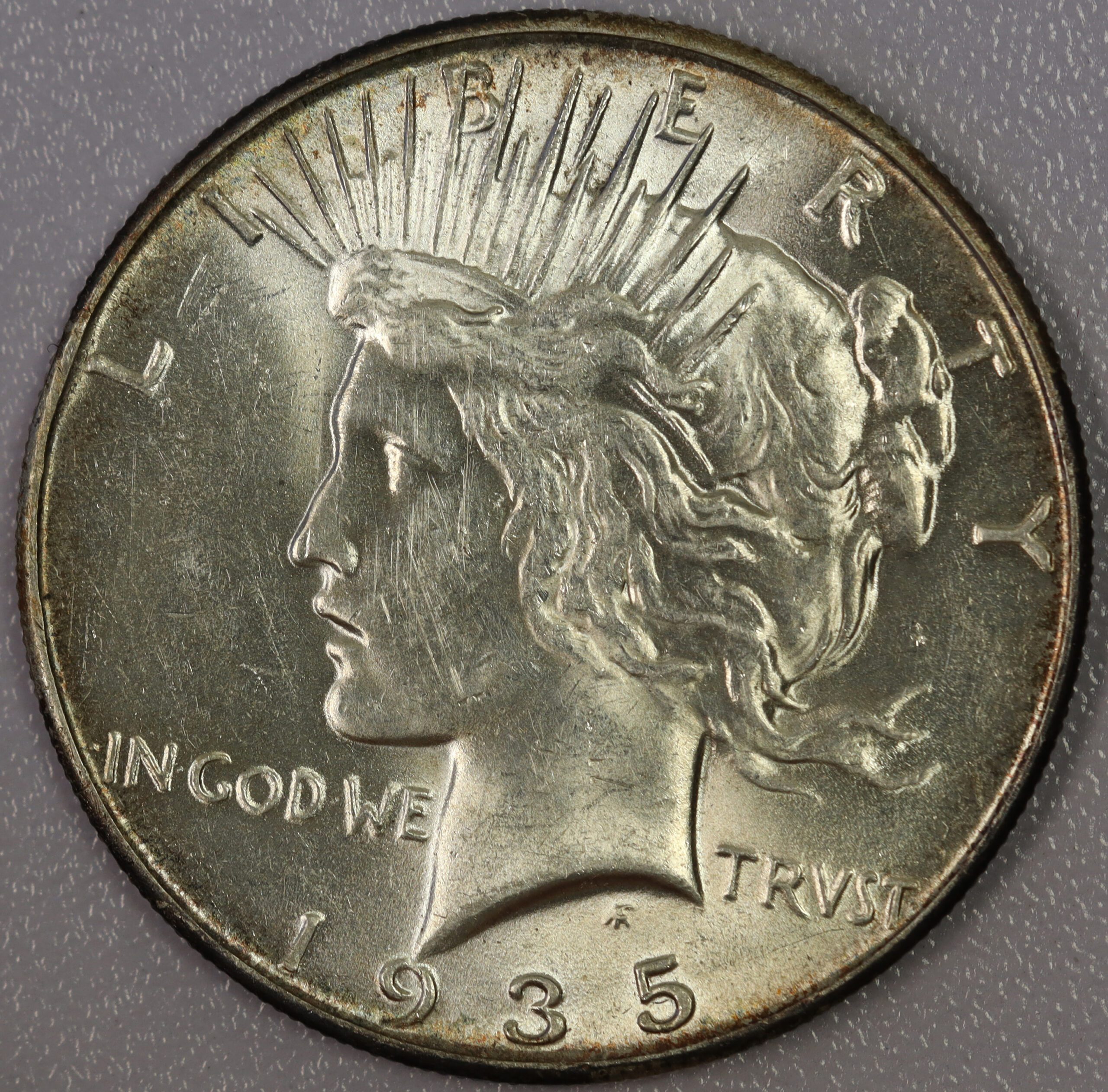 Auction – 1935 Peace Dollar UNC Scratched Toned