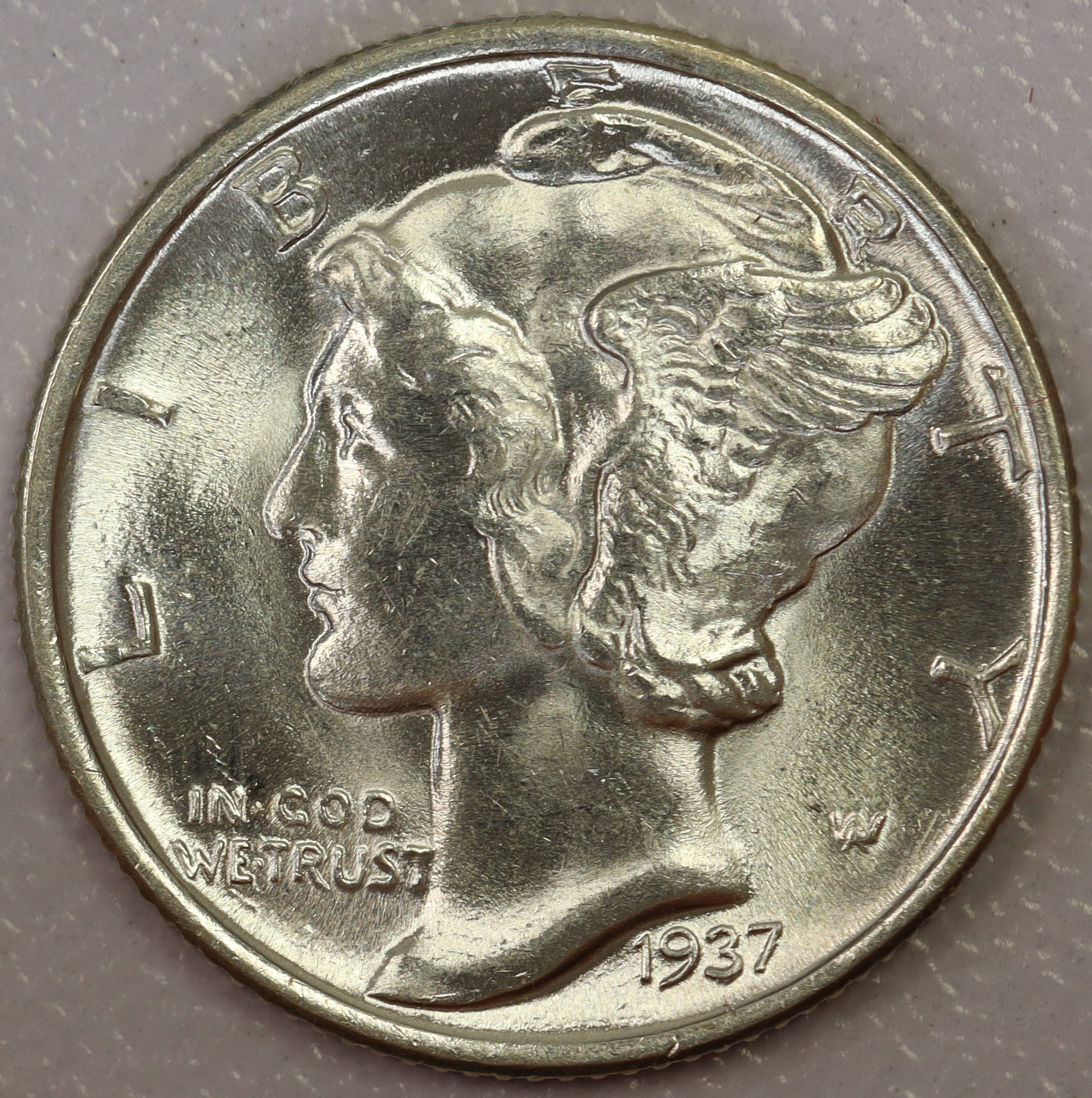 Auction - 1920 D Mercury Dime AU Old Cleaning