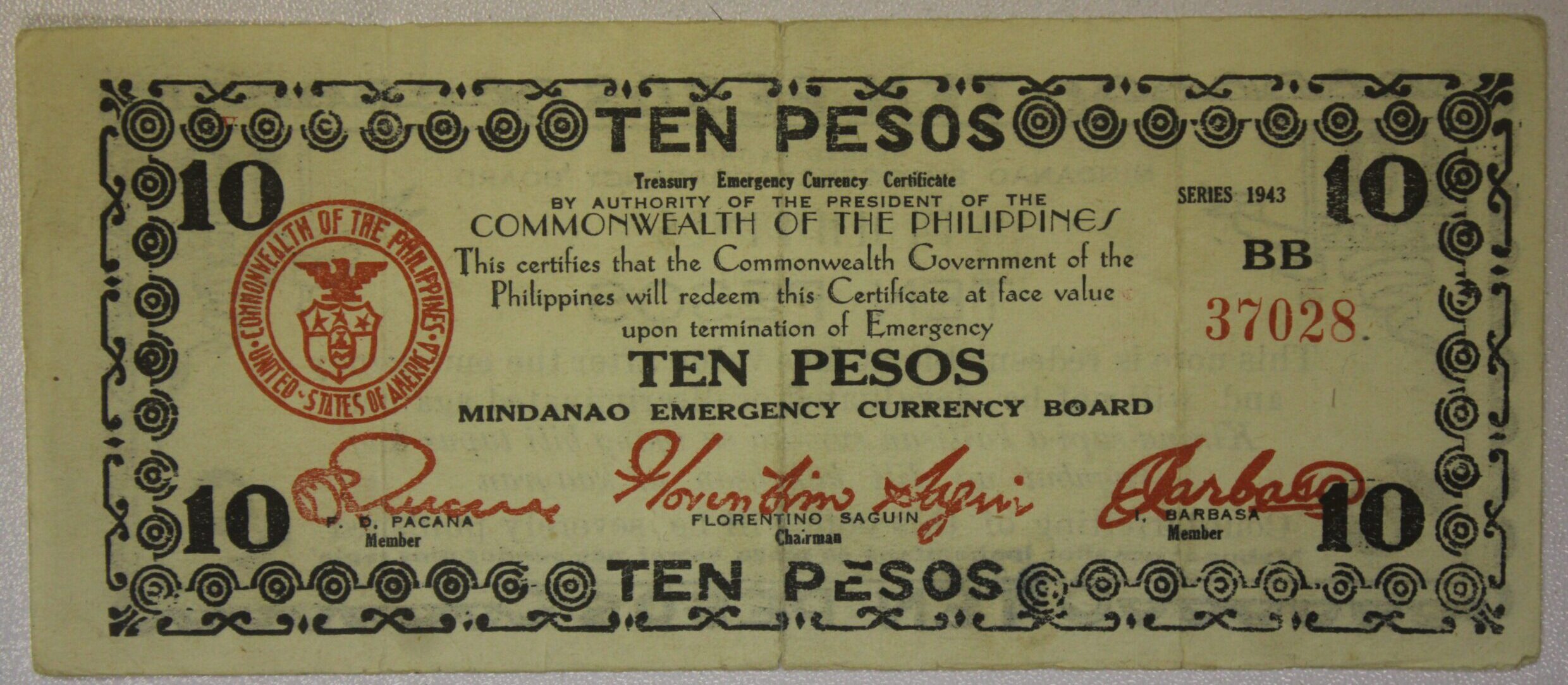 AUCTION- 1943 Philippines WWII Guerrilla Issue 10 Pesos
