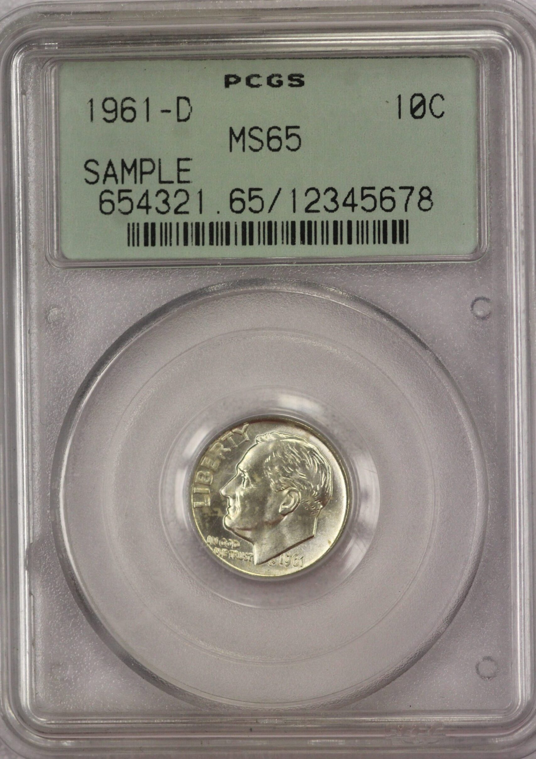 AUCTION-Â Â 1961-D Roosevelt Dime PCGS MS65 Sample Slab