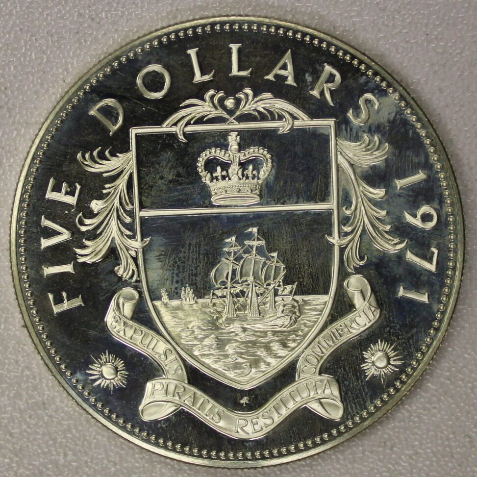 AUCTION-Â Â 1971 Bahamas Five Dollars Proof (.925 Silver 1.2526 ASW)