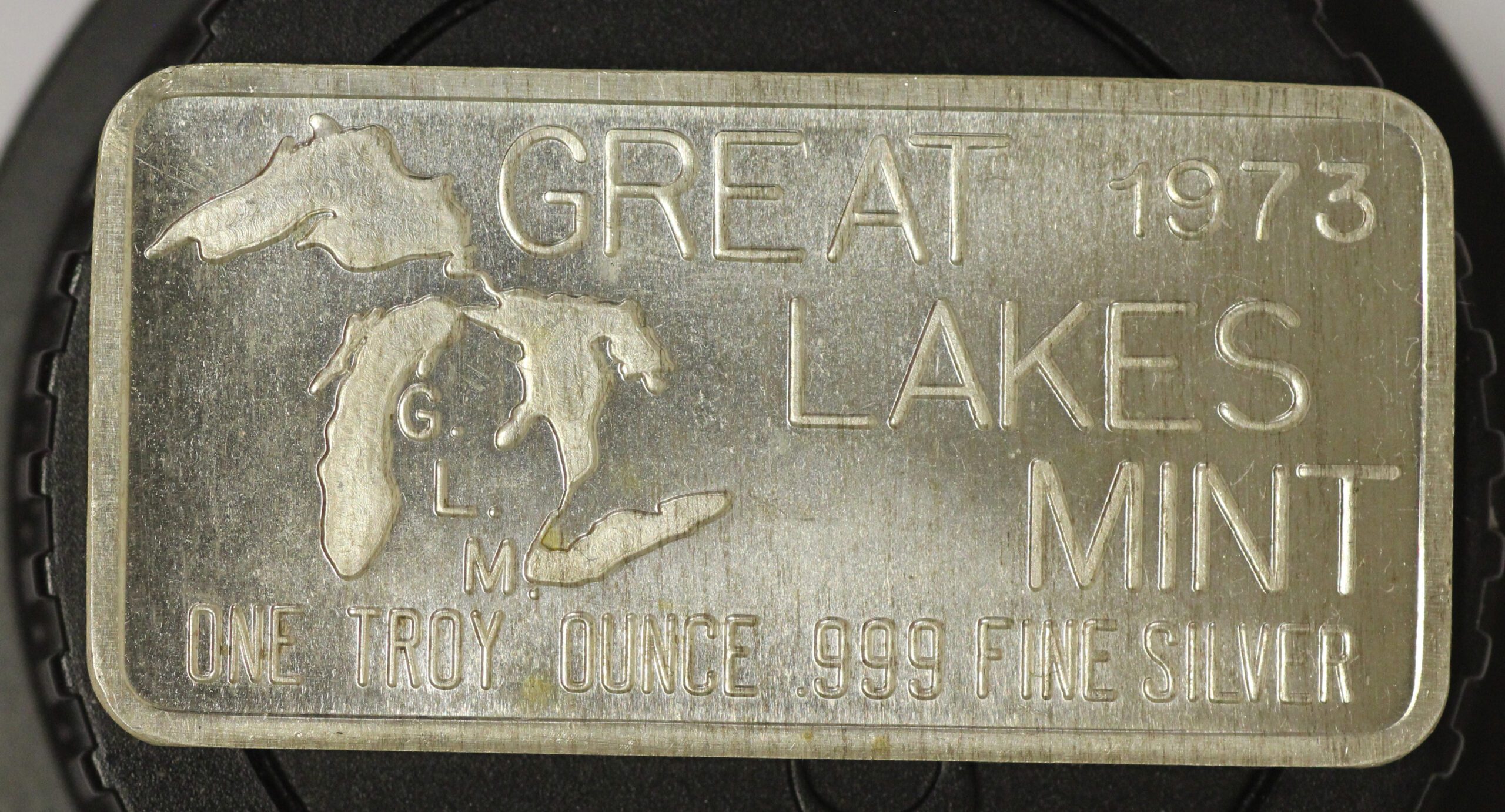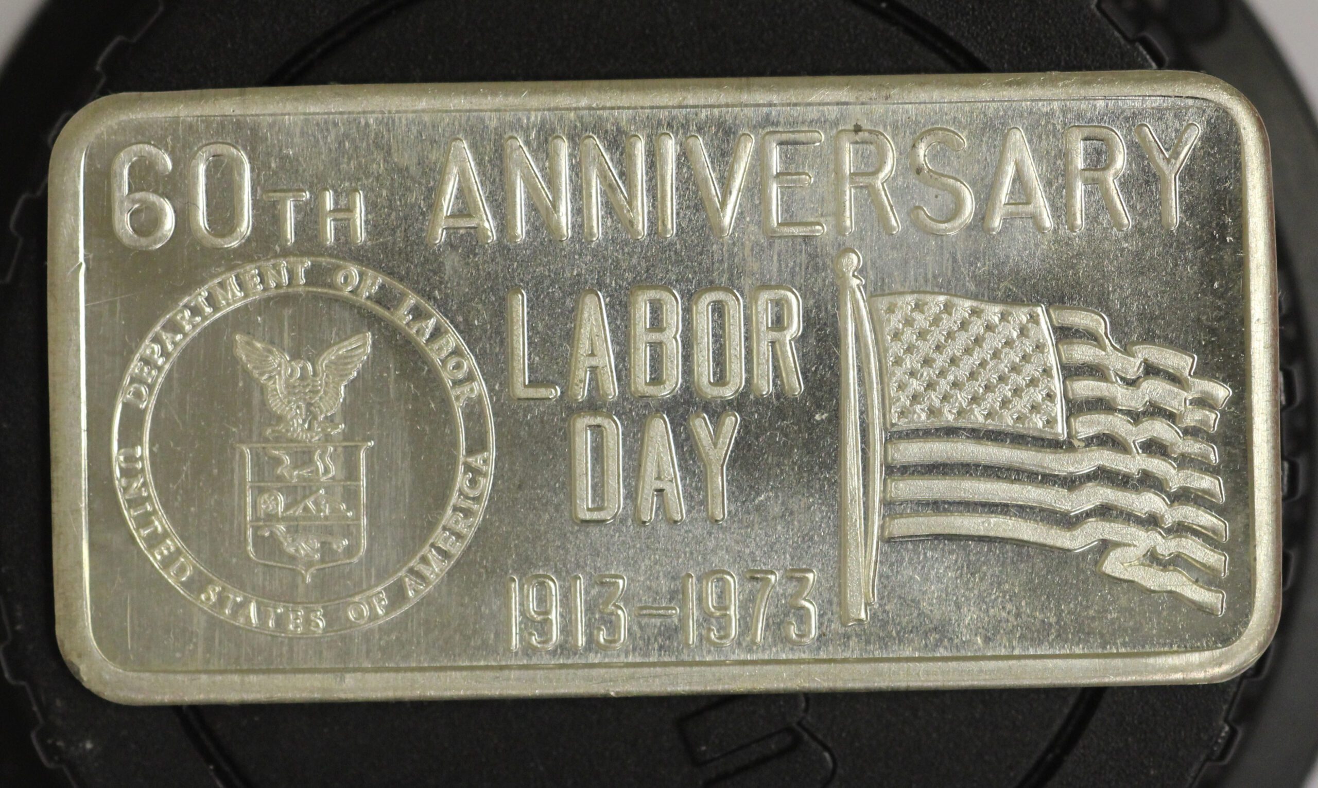 Auction – 1973 Great Lakes Mint 60th Anniversary Labor Day 1913-1973 One OZ .999 Fine Silver Bar