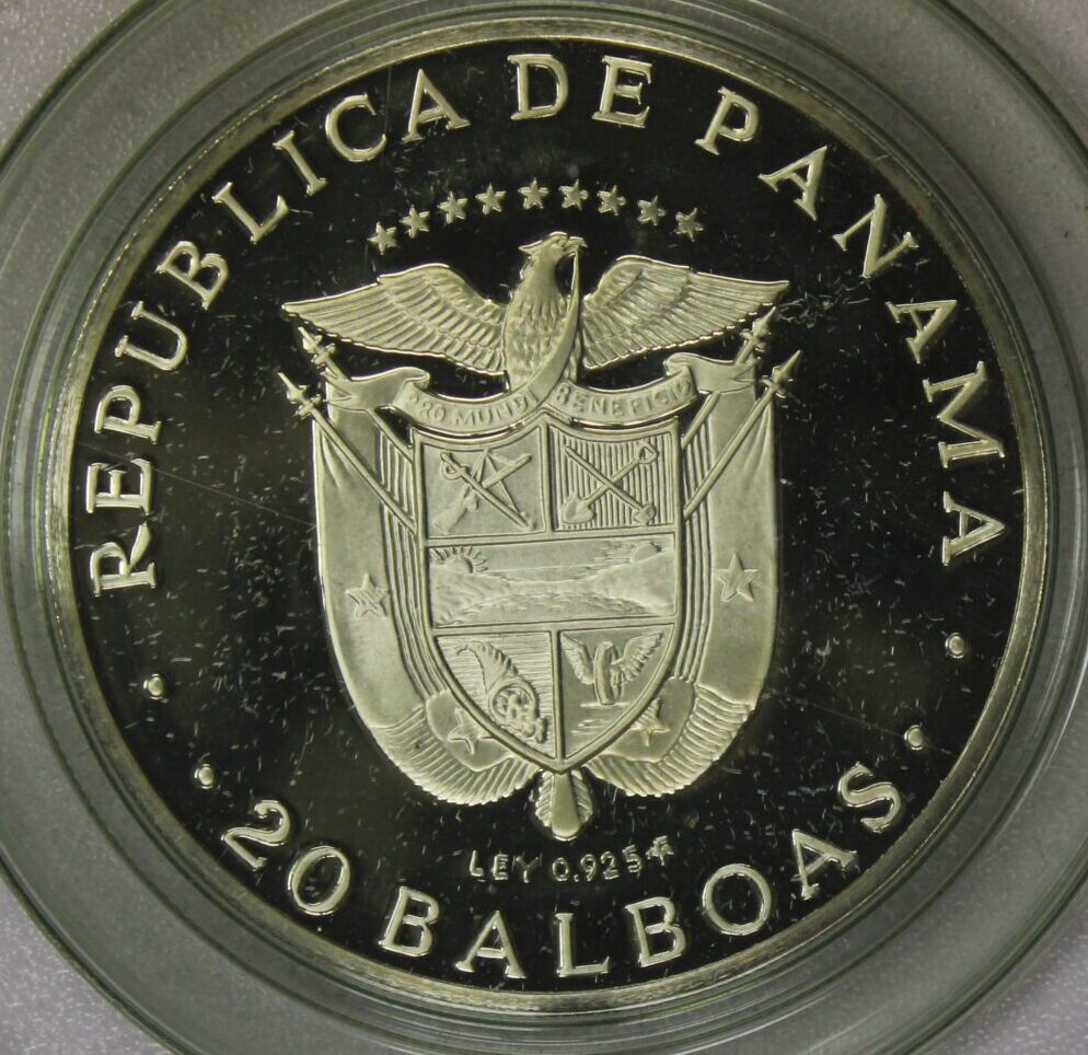 AUCTION- 1973 Panama 20 Balboas Sterling Silver Coin 4.27 Troy Ounces