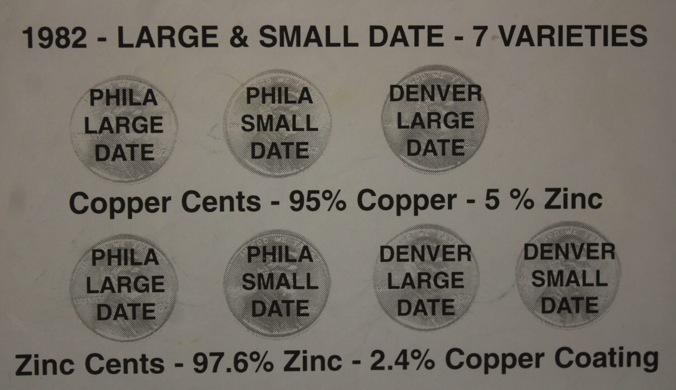 AUCTION-Â Â 1982 Lincoln Cents 7 Varieties of the Zinc & Copper Cents