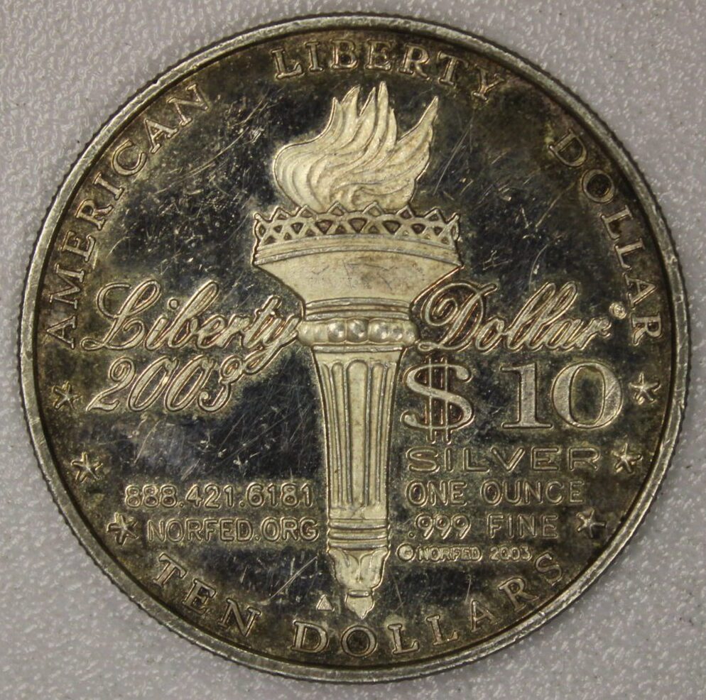 AUCTION-Â Â 2003 NORFED American Liberty Ten Dollars One Ounce .999 Fine Silver