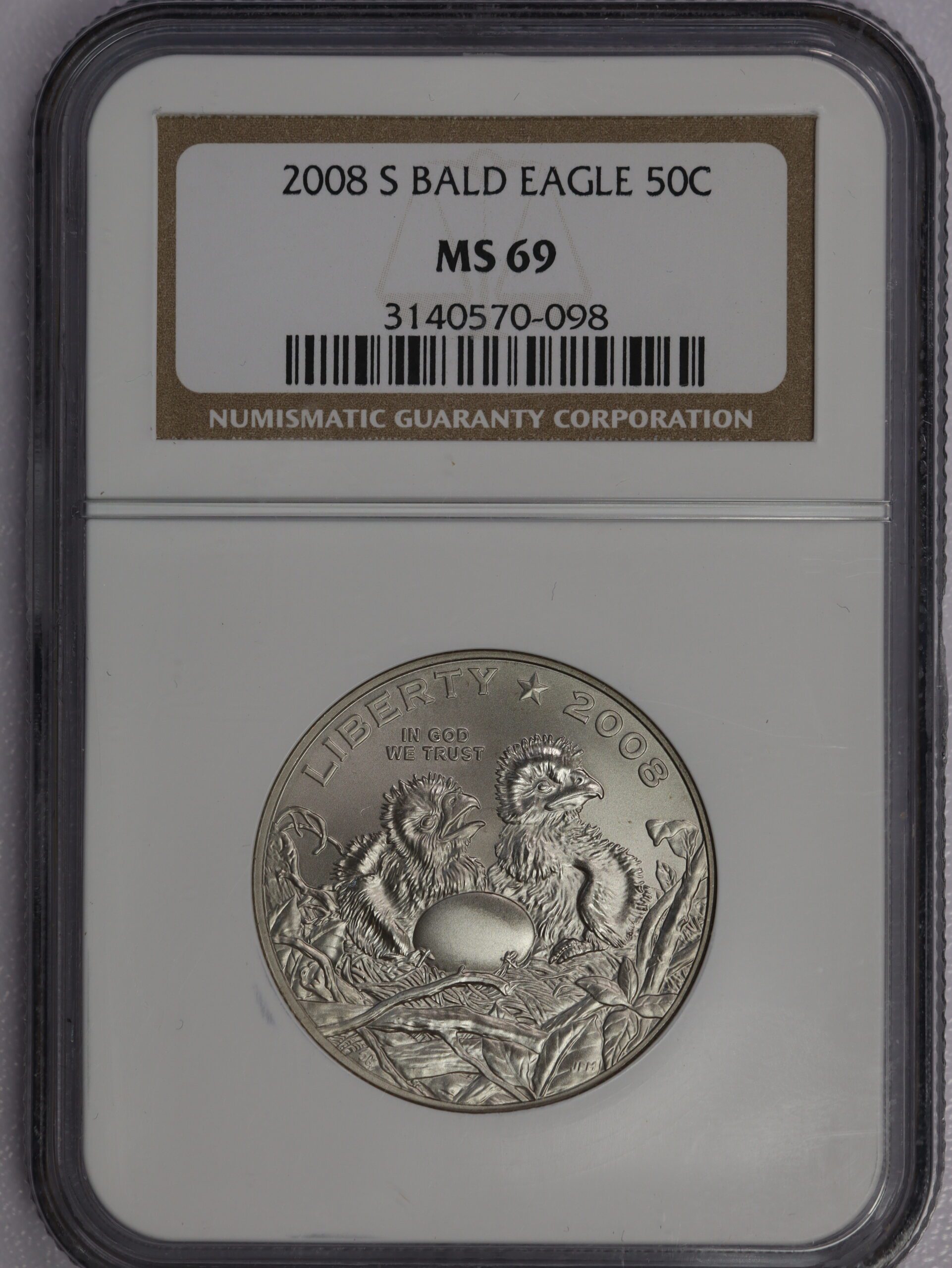 Auction – 2008 S Bald Eagle Clad half Dollar Comm. MS69 NGC
