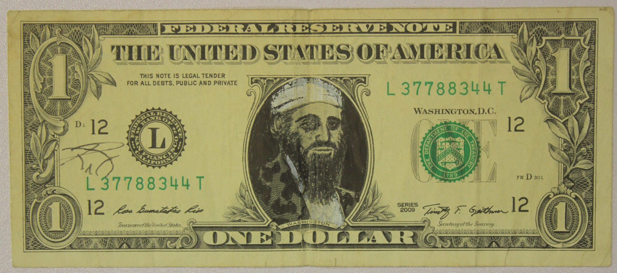 AUCTION-Â Â 2009 One Dollar Federal Reserve Note Dollar Bill Art Signed by Artist
