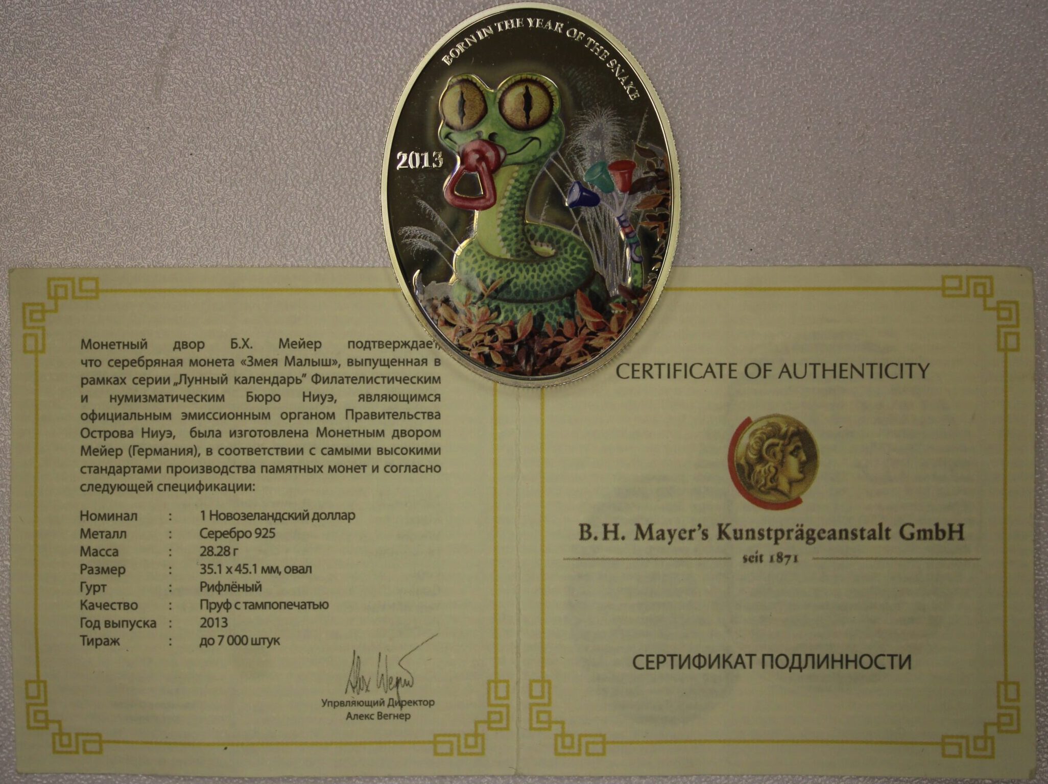 AUCTION-Â Â 2013 Niue One Dollar Year of the Snake .925 Silver 28.28 Grams