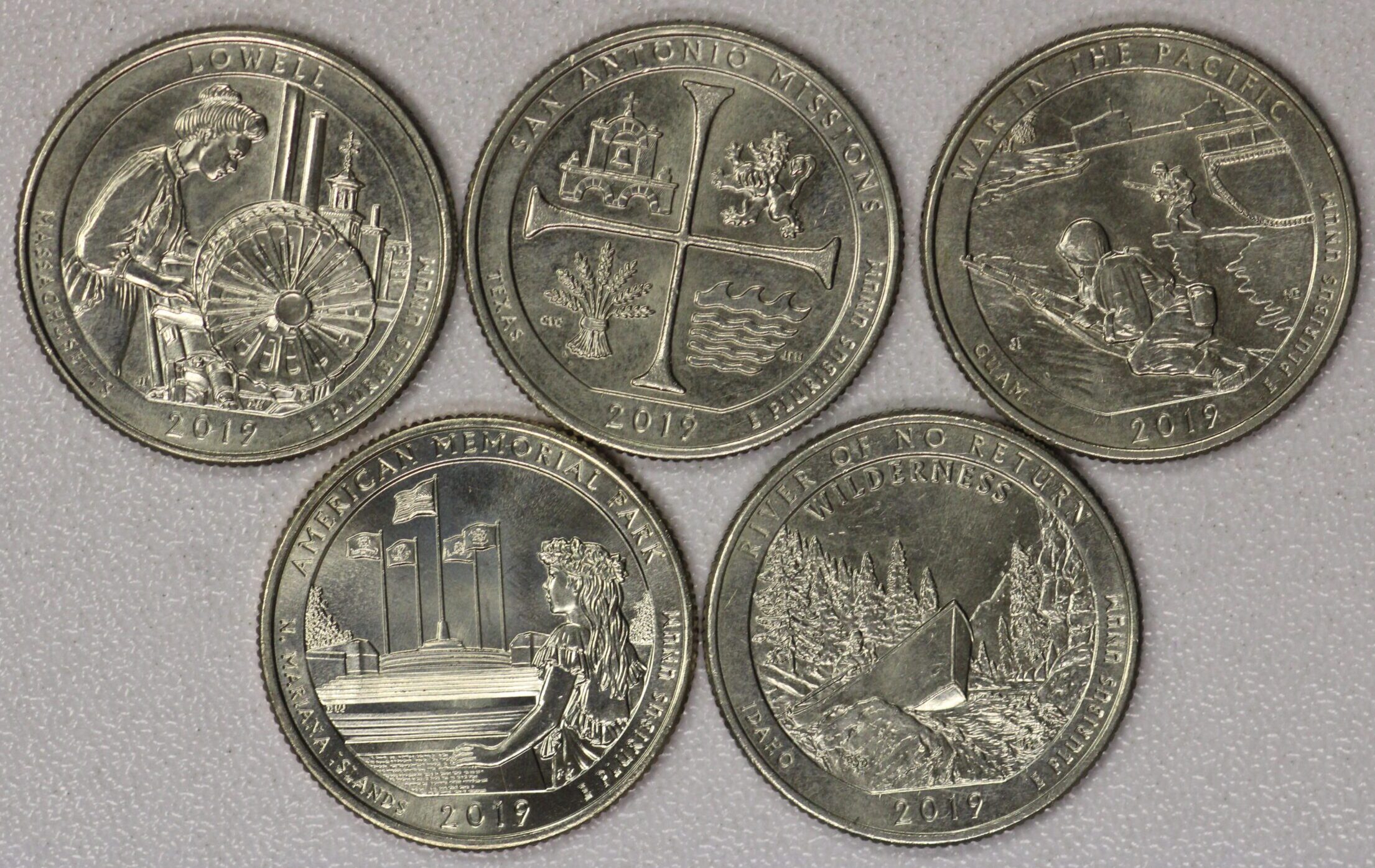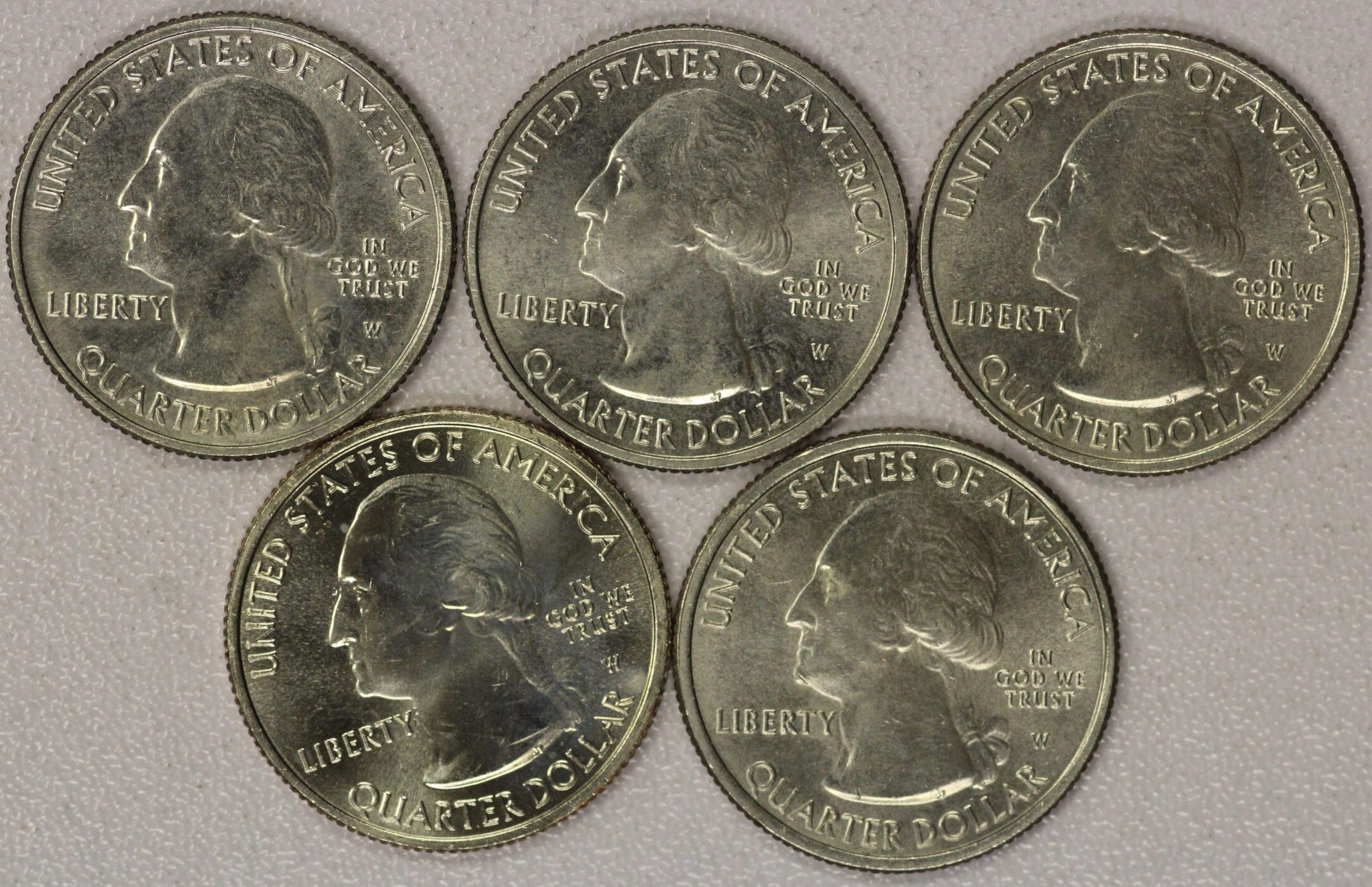 AUCTION-Â Â 2019 Washington Quarters All Five Different “W” Mint Marks