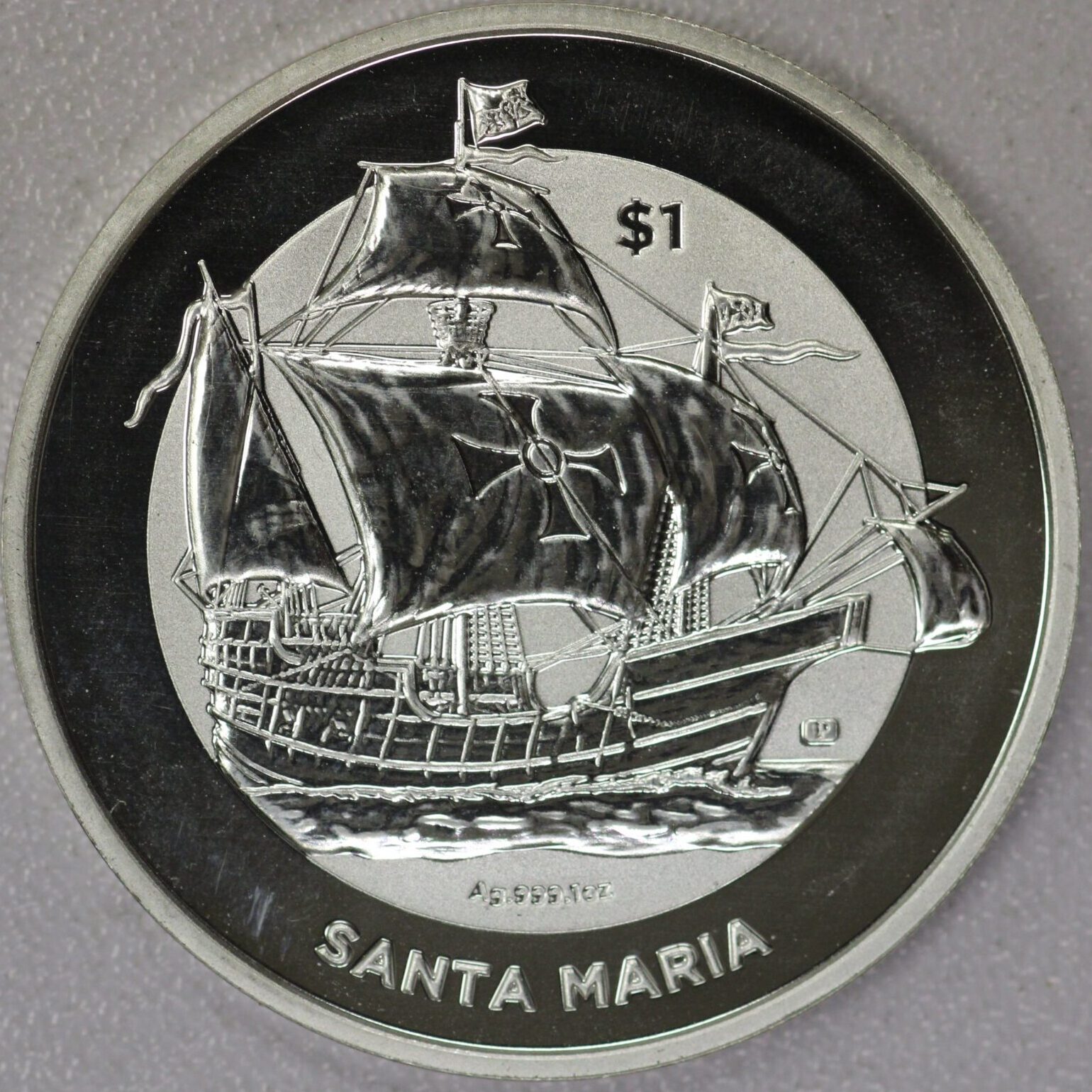 AUCTION- 2022 British Virgin Islands One Dollar Santa Maria One Ounce .999 Silver