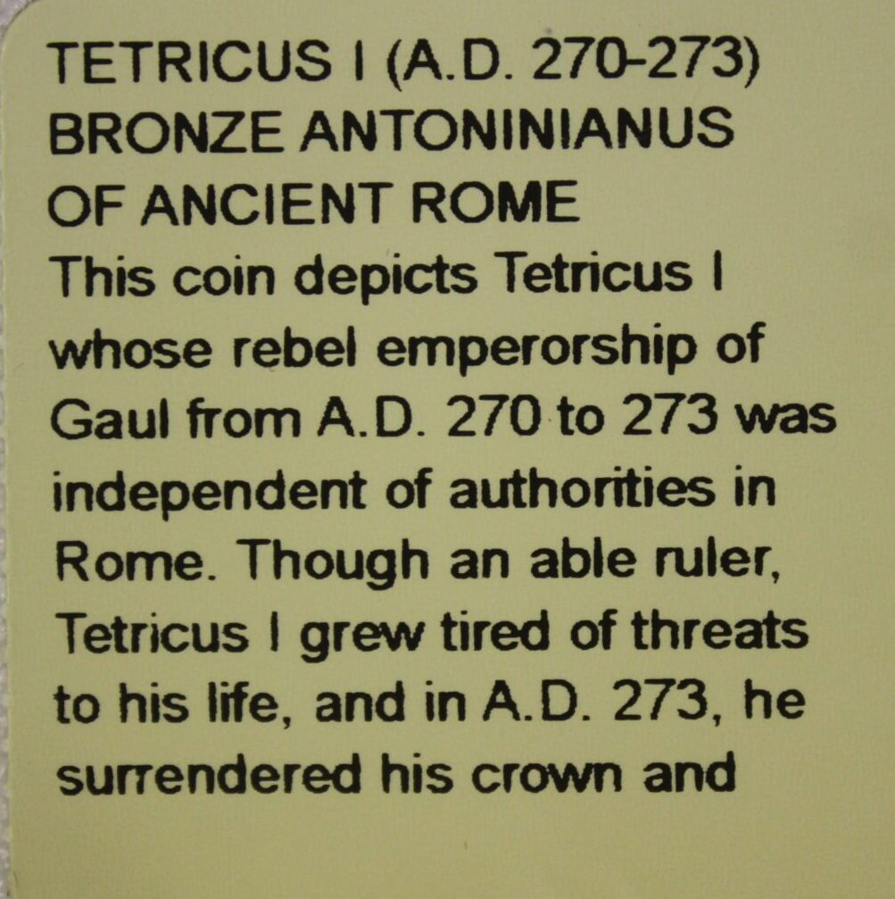 AUCTION- 270-273 AD Tetricus I Bronze Antoninianus Ancient Roman Coin