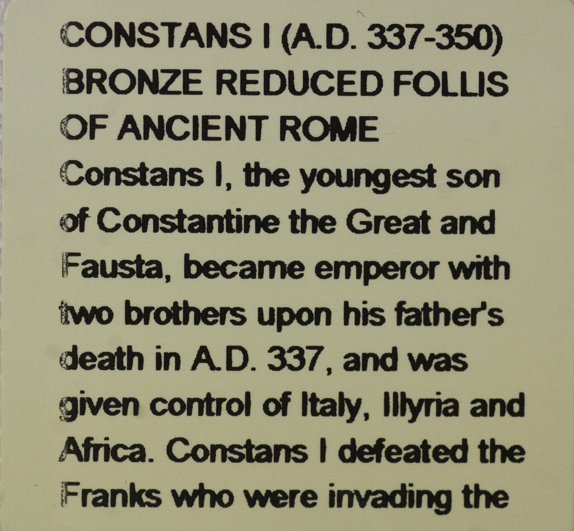 AUCTION- 337-350AD Constans I Reduced Follis Ancient Roman Coin