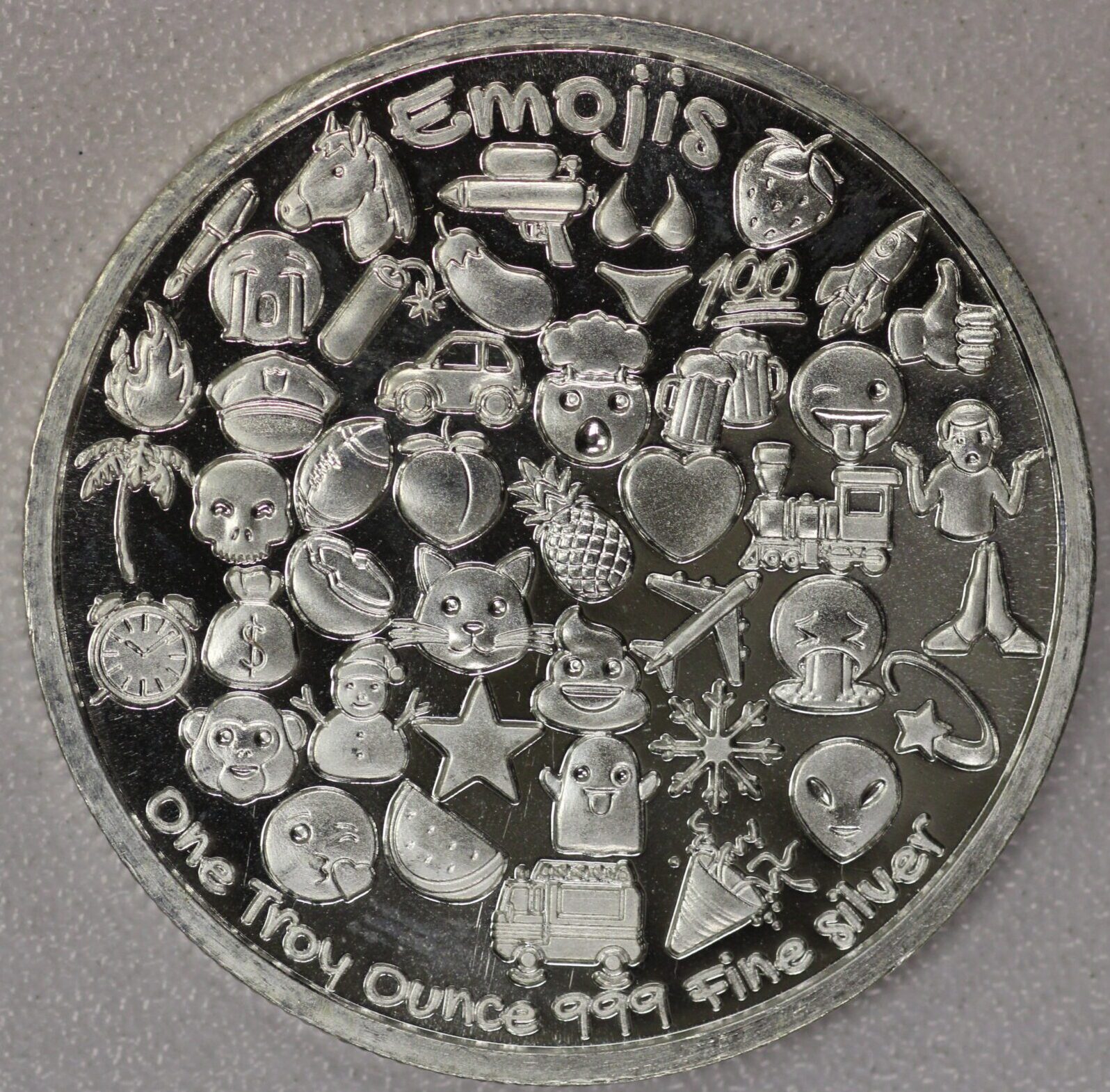 AUCTION-Â Â “Emojis” One Troy Ounce .999 Fine Silver Round