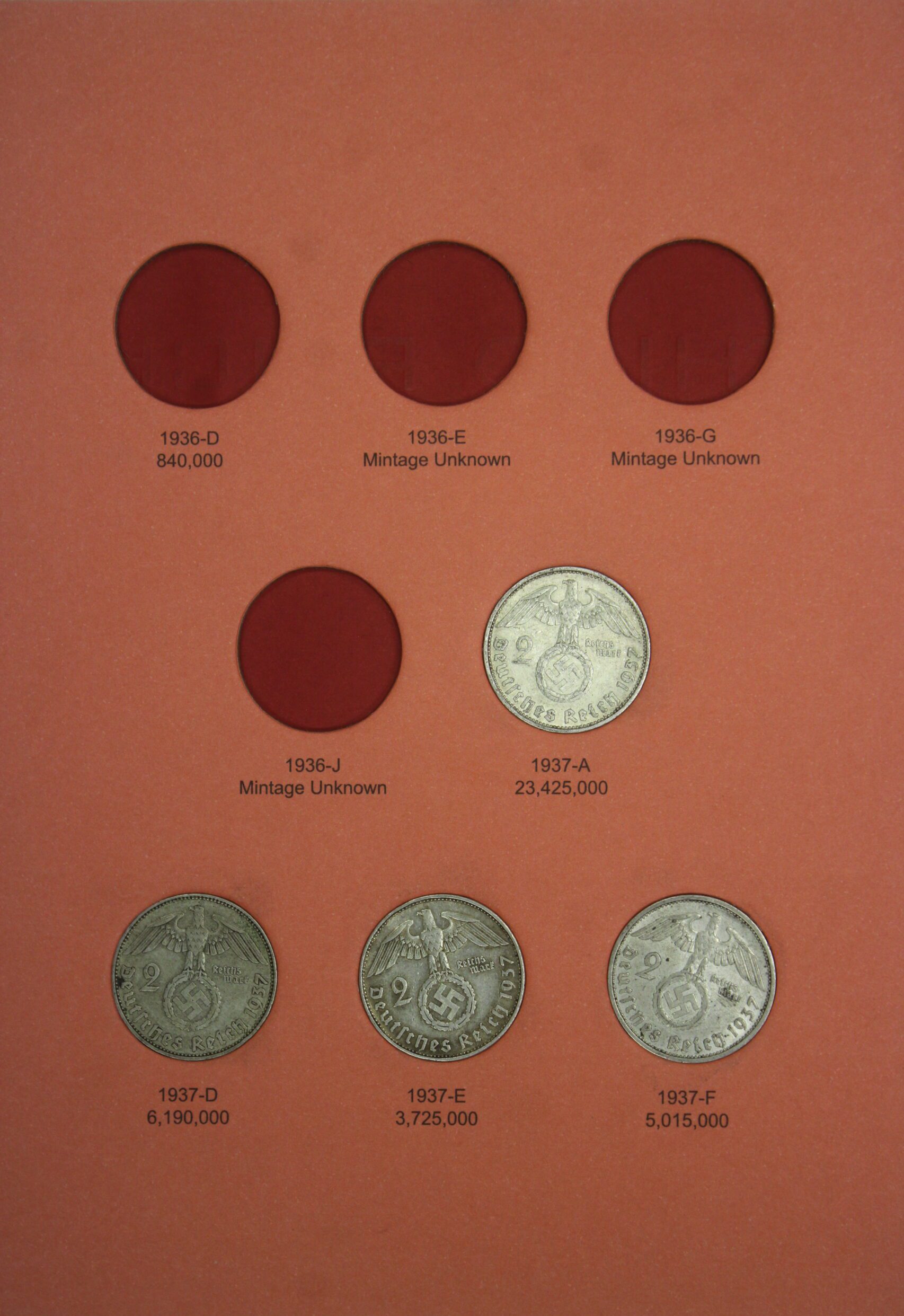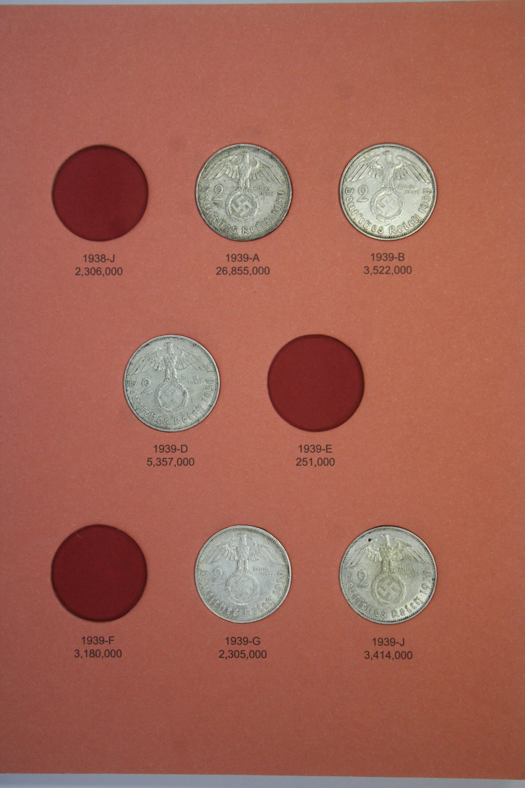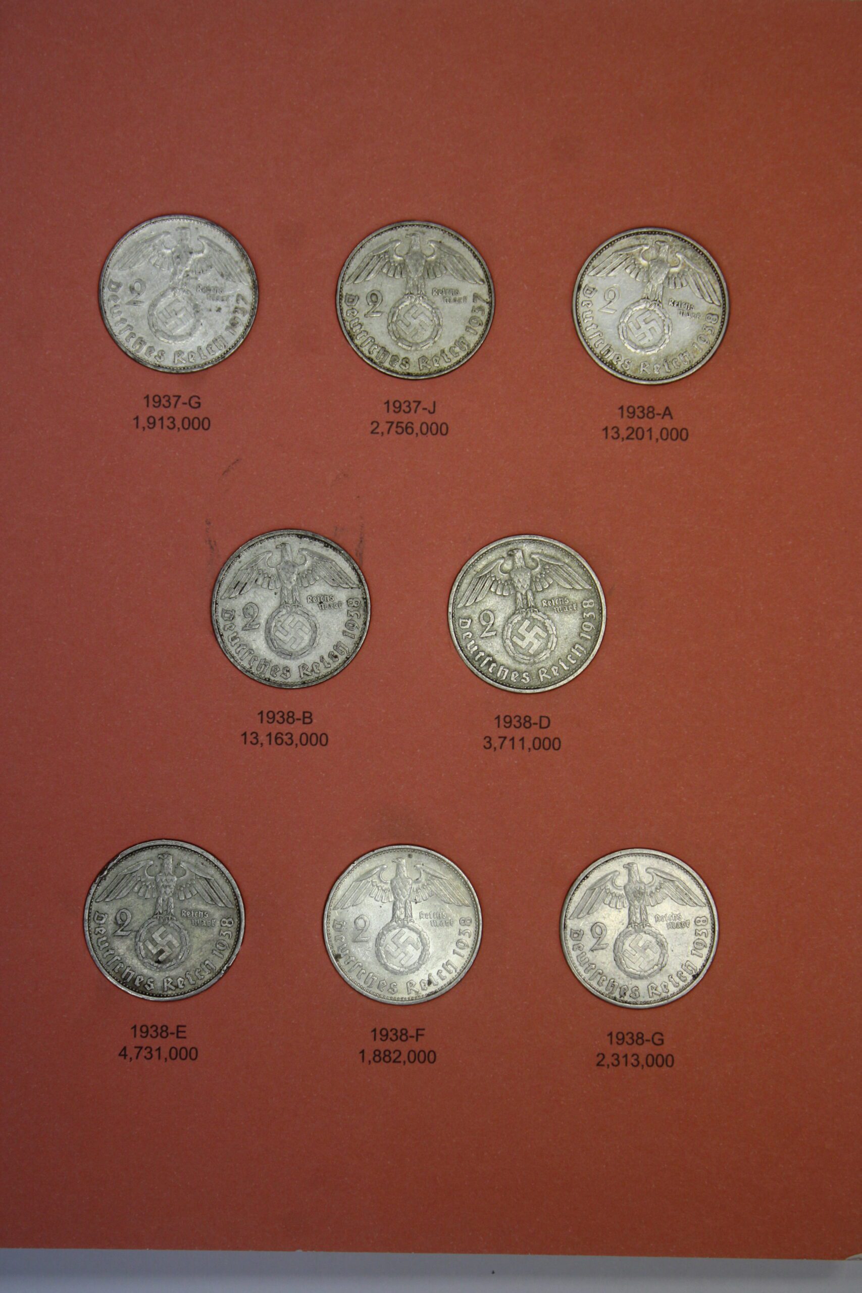 AUCTION-Â Â Germany Third Reich 2 Reichmark 1936-1939 Folder with 17 different Coins