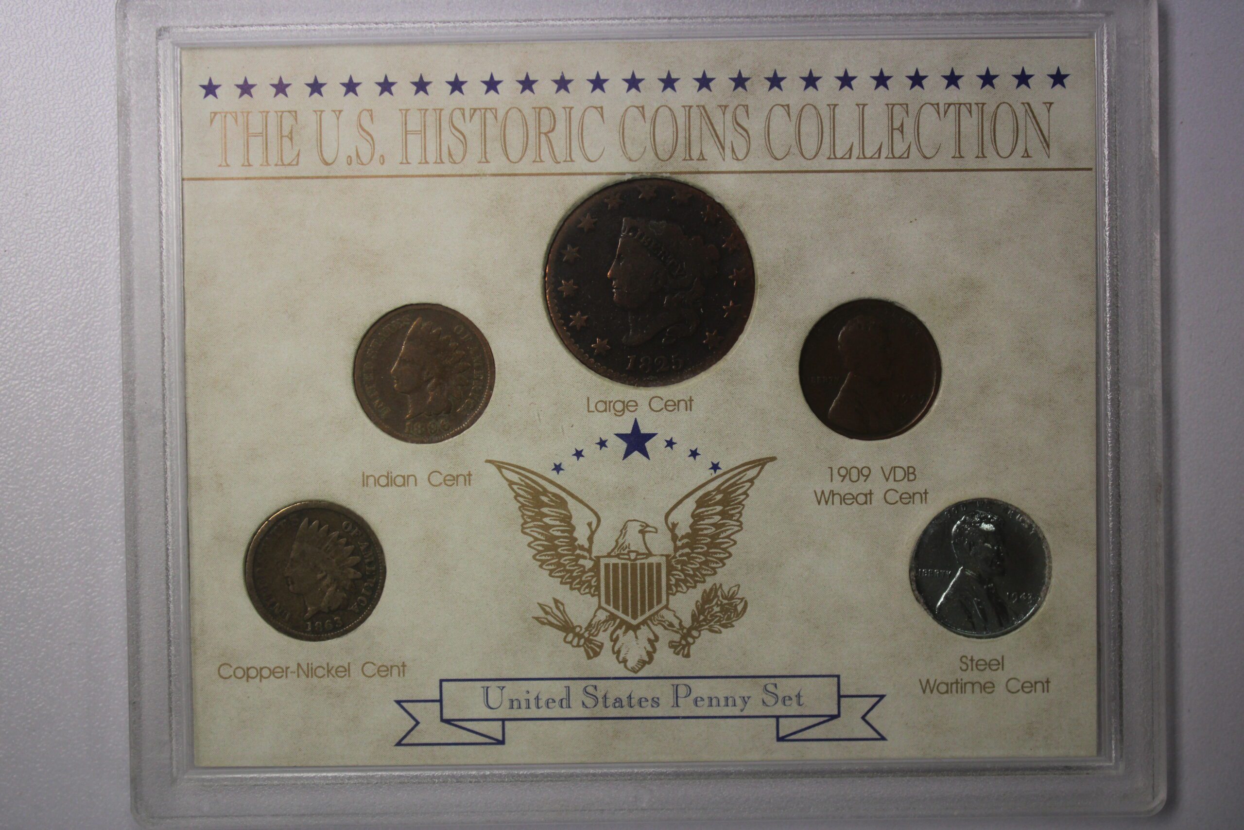 Auction – US Cent Collection One Large Cent (1825) Two Indian Cents (1863) & Two Wheat Cents 1909 VDB