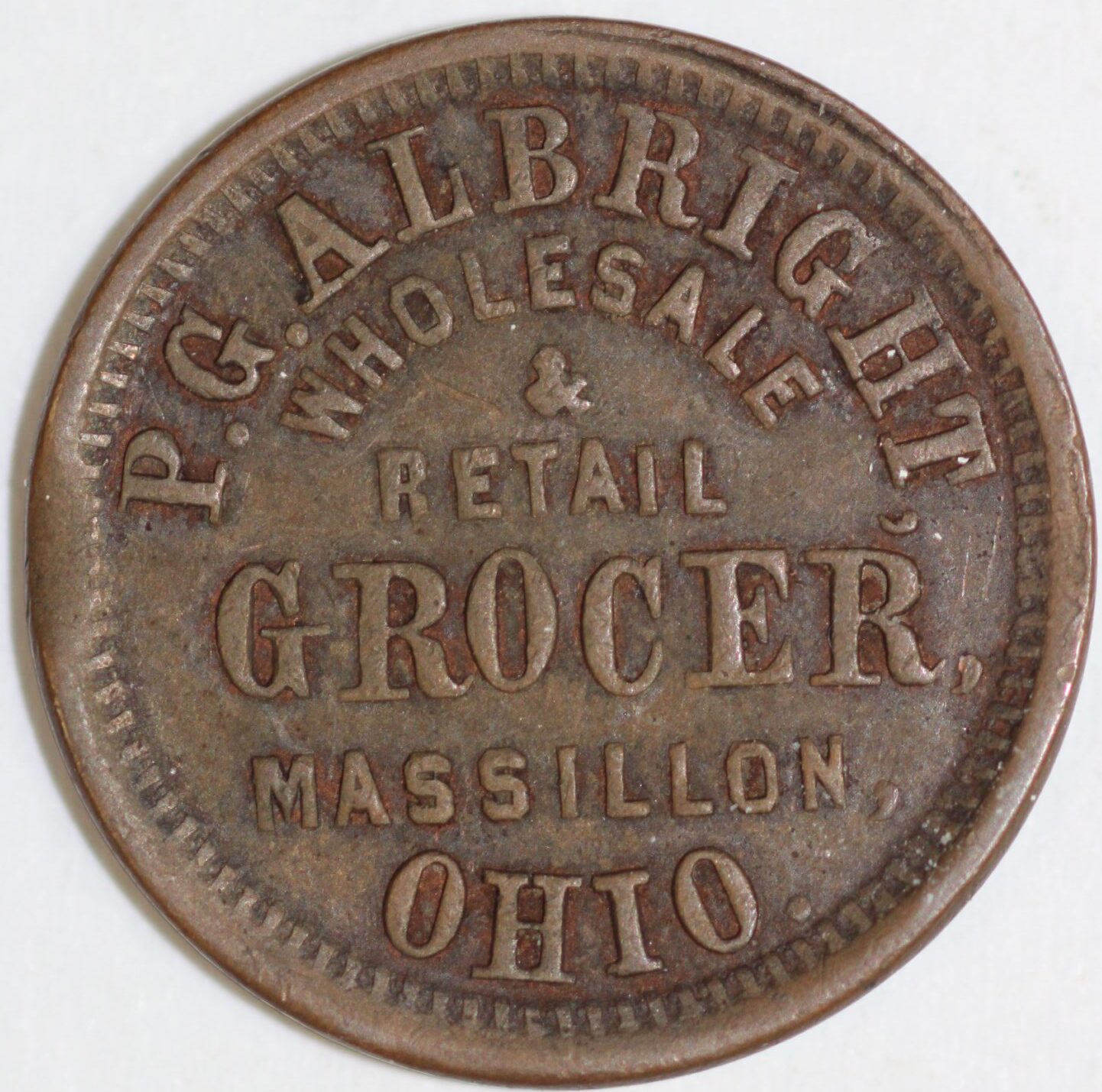 Civil War Store Card 1863 P G Albright Wholesale & Retail Grocer Massillon Ohio.