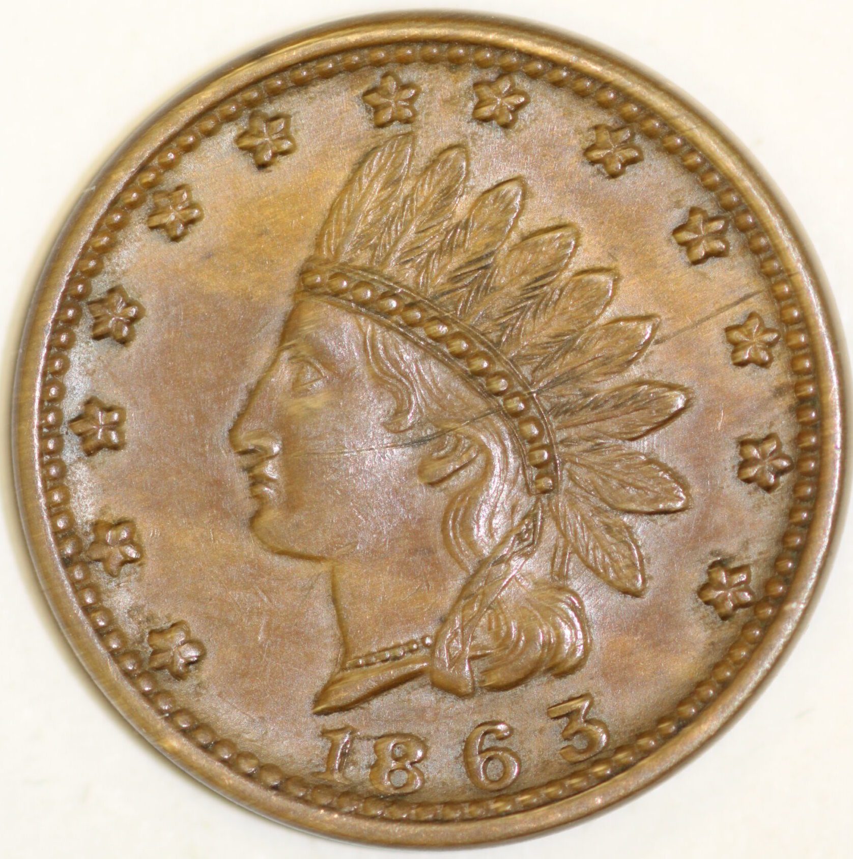 Civil War Token 1863 Indian Head Obverse & Flags Drum and Cannon Reverse. High Grade Example