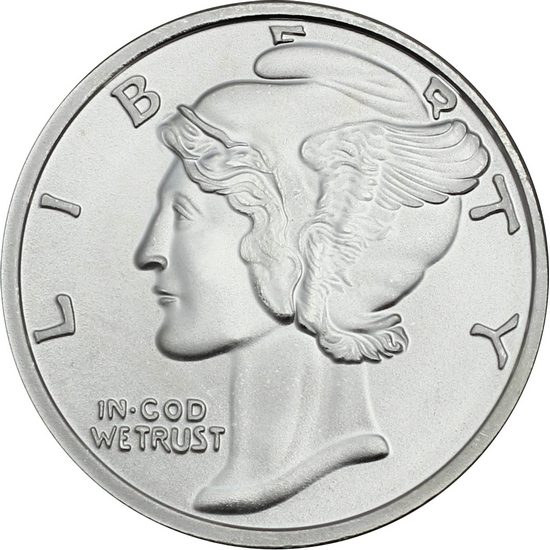 Mercury Dime Replica Silver Round .999 Fine Silver 1 oz.