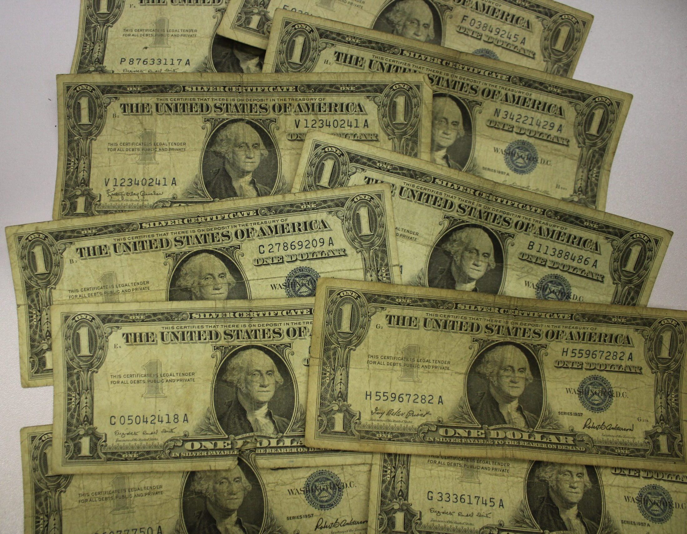 Ten (10) Well Worn 1957 Silver Certificates
