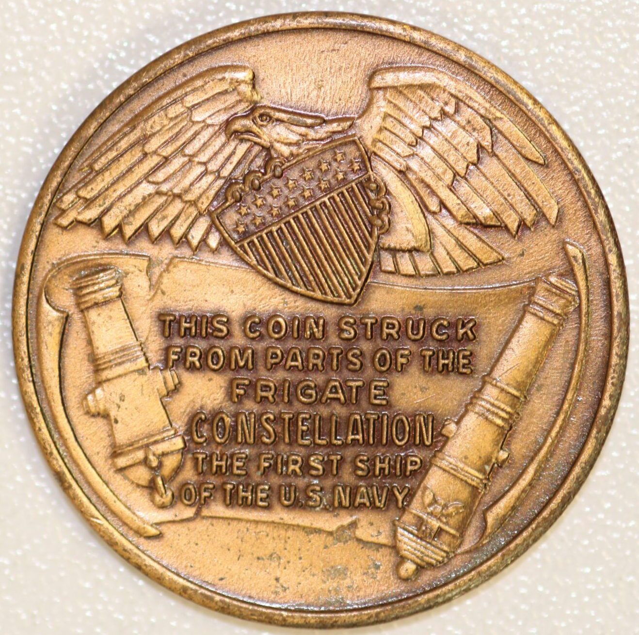 US Frigate Constellation 1797 This coin struck from parts of the Frigate Constellation the first ship of the US Navy.